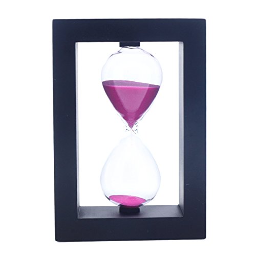 砂時計 30分計 長方形 透明感 白枠 木製 ギフト (ブラック枠×パープル)