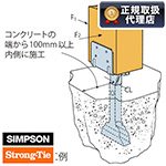 溶融亜鉛メッキ鋼板。コンクリート床面より51mmの高さに柱を設置する為、水濡れによる柱の下端の劣化を防止する。コンクリートを打つ時に施行する。