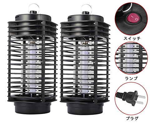 【2台入り スイッチ付き】 電撃殺虫器 電撃殺虫ランプ ブルーライト誘引式殺虫器 虫除け 電気 ショック 殺虫装置 蚊対策 屋内専用 吊り下げ式 有効面積約6坪(20平米) 薬剤不使用 赤ちゃんやペットにも安心、無害 台所 居間 寝室 飲食店 オフィスや事務所等場所に最適