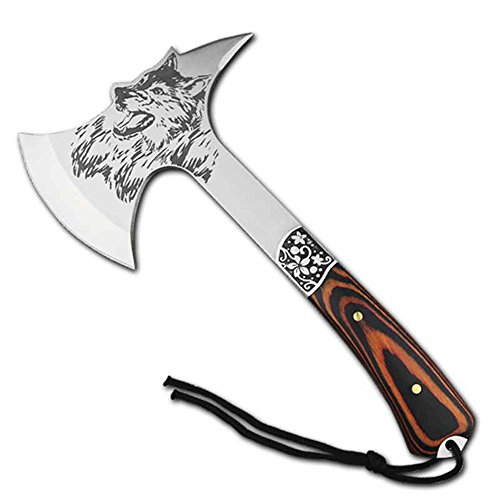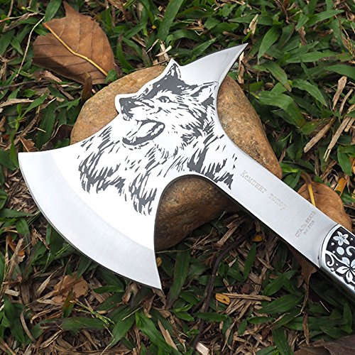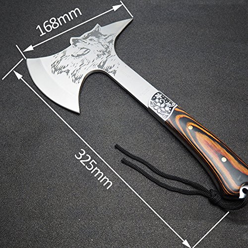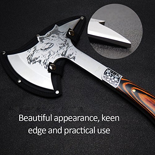 OLDF ガーデンアックス 斧 多機能トマホークアウトドアウルフモデルマウンテンキャンプアックスサバイバルキャッチハチートと木製ハンドルポータブルジャングルアックス