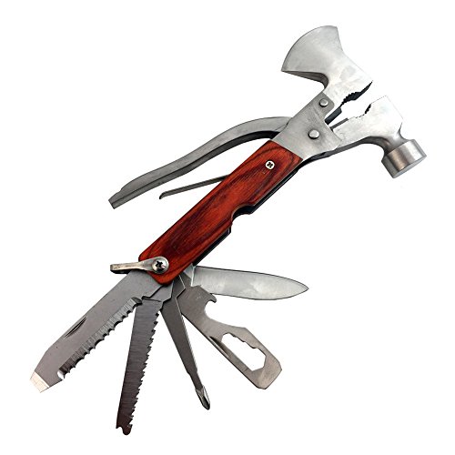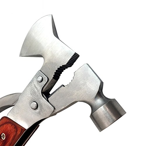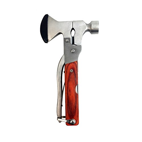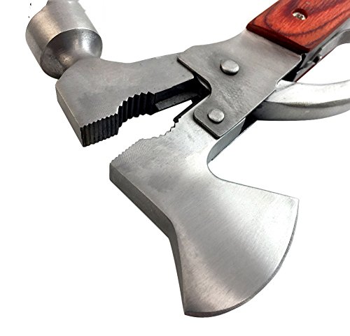 OLDF ガーデンアックス 斧15 In 1多機能工具ステンレススチールオート緊急キットツール、安全ハマーアックススクリュードライバーのこぎりナイフ