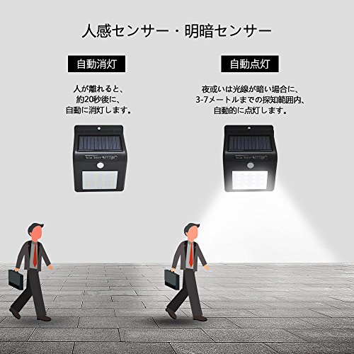 - 【人感センサー】内蔵のモーションセンサーによって、周囲が暗い時、人感センサーのは人からこのライト3―7メートルまでの探知範囲内、自動的に点灯します。これから離れたら、約20秒後に、消灯します。