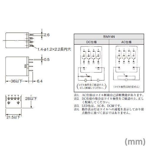 最大開閉電流 AC: 3A (抵抗負荷(cosφ=1))