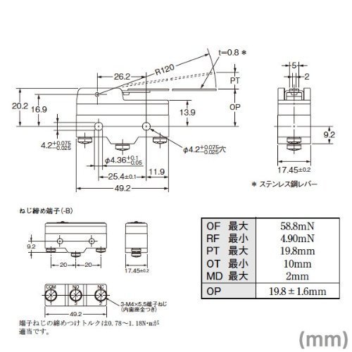 アクチュエータ 小勢力ヒンジ・レバー形(R120・SUSレバー)