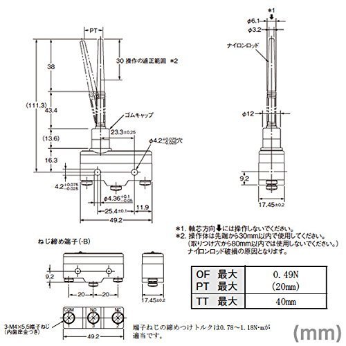 開閉能力説明 ランプ負荷とは10倍の突入電流を有するもの。 誘導負荷とは力率0.4以上(AC)、時定数7ms以下(DC)のもの。 電動機負荷とは6倍の突入電流を有するもの。