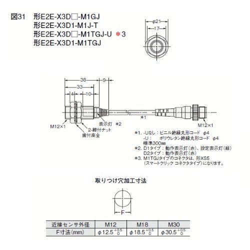 オムロン(OMRON) E2E-X3D1-M1GJ 0.3M 近接センサ シールドタイプ (M12・検出距離3mm)(直流2線式)(M12標準コネクタ中継タイプ) NN