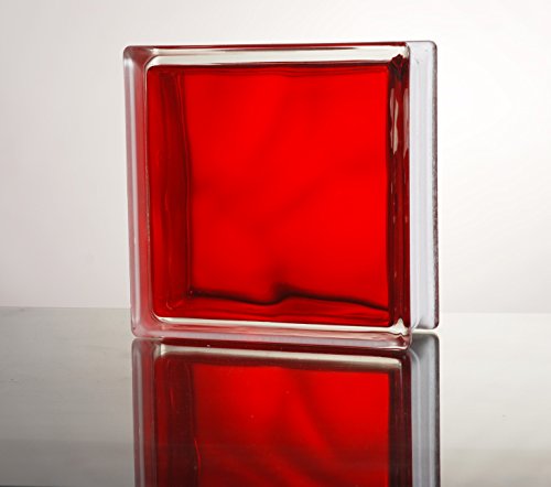 ガラスブロック ◆◆◆デザイン豊富20種類◆◆◆(カラーシリーズ) 190mm角×80mm厚 (1個(サンプル), In Colored Red)