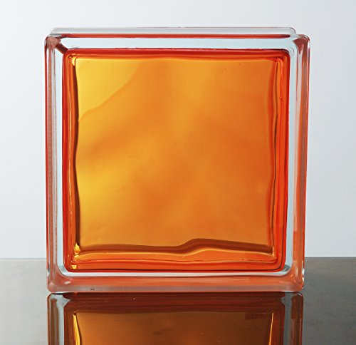 ガラスブロック ◆◆◆デザイン豊富20種類◆◆◆(カラーシリーズ) 190mm角×80mm厚 (1個(サンプル), In Colored Saffron)