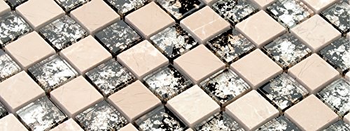 - 透明度の高いガラスと大理石の質感が美しいアートモザイクタイルです。