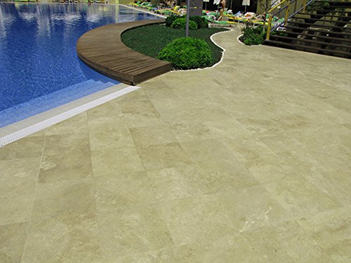 - 天然石ならではのナチュラルな風合いが魅力のベージュ系トラバーチン床材です。