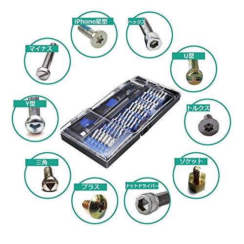 - 【適用】60in1 ドライバーセット作業性抜群、携帯電話、PC、コンピュータ、時計、メガネ、ハードドライブ、プリンター、シェーバー、扇風機、モデル、自転車、iPhone、MacBook、iPad、カメラ、PDAハウジング、PSVとPS4を開くことができます。精密機器の修理・組立など、微細なネジの着作業に適用。いざという時に、一家庭に一つあれば大変便利です。