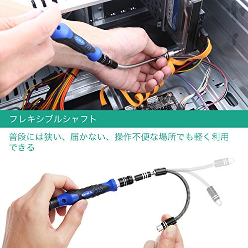 - 【使いやすい】ドライバーの先端に磁石付け、ひっつくのはやりやすいですし、 延長シャフトが付き、狭いところや先端が届き難い場所でも使いやすいですし、取っ手のキャップにボールベアリングが付き、ドライバーは回転することが便利ですし。また、ドリル用ホルダーが付き、お持ちの電動ドリルとソケットを接続することができます。
