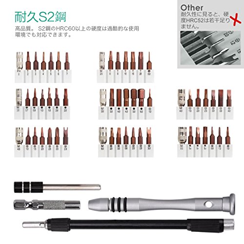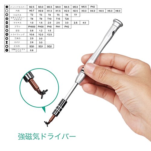 - 【作業性抜群】ドライバーセットは携帯電話、PC、時計、眼鏡、ハードドライブ、プリンター、シェーバー、扇風機、モデル、iPhone、MacBook、カメラ、PSPを開くことができます。用途に応じて56種ビットを付け替えて、様々の用途に適用できます、一家庭に一つあれば大変便利です。