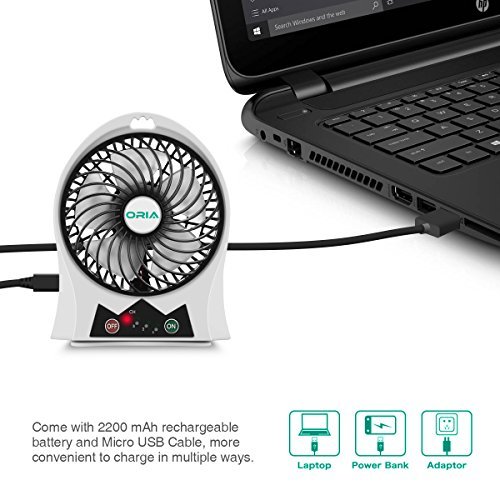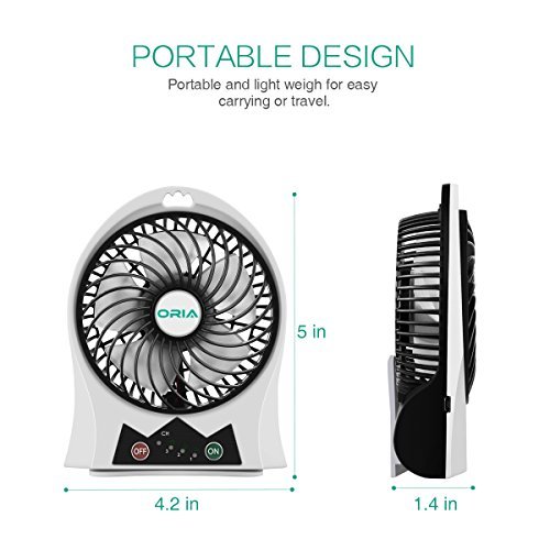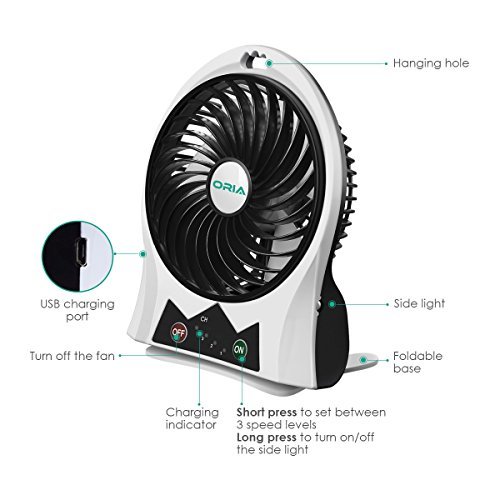 ORIA Portable Mini Fan, 3 Speeds and 90°Up and Down adjustable USB Rechargeable Fan, with LED light and 2200mAh Battery, for Personal Cooling, Desktop, Traveling, Hiking, Fishing, Camping, Boating [並行輸入品]