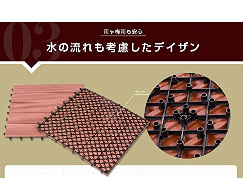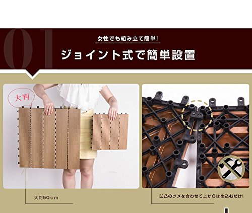 - 機能:ベランダやバルコニーなどのガーデニング床材に最適です。耐候性にすぐれ、長期間色が保てます。取り付け取り外しが簡単にできます。