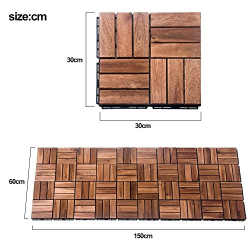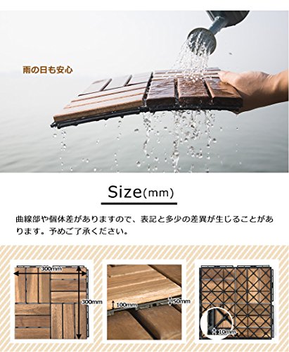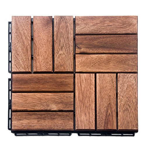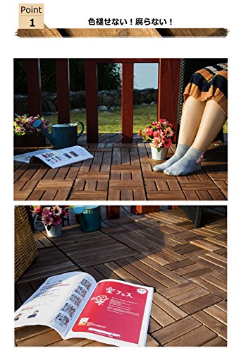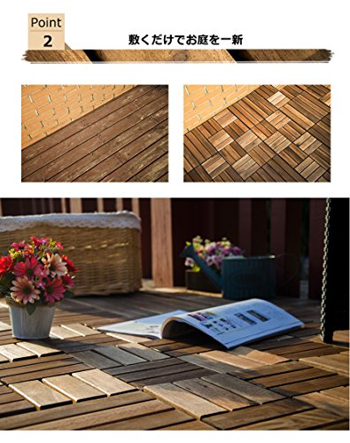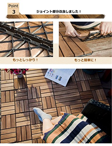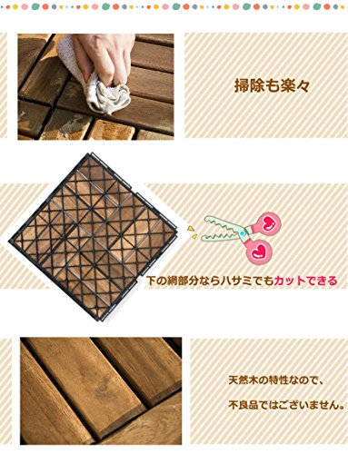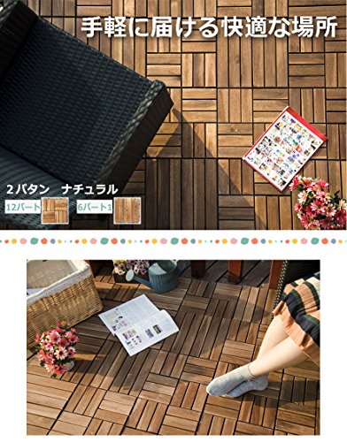 (leisure zone )ジョイントタイル ウッドデッキ アカシア 天然木 10枚セット WF037383 (ナチュラル, 12パート)