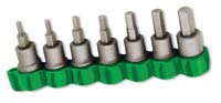 Hex Bit Socket Set (Metric; 7 Piece)No. 6170 – Hex bit socket set (Metric; 7 piece).Set includes one each of the following: No. 6171 – Size Hex 3 mm Sq. Drive 3/8"No. 6172 – Size Hex 4 mm Sq. Drive 3/8"No. 6173 – Size Hex 5 mm Sq. Drive 3/8"No. 6174 – Size Hex 6 mm Sq. Drive 3/8"No. 6175 – Size Hex 7 mm Sq. Drive 3/8"No. 6176 – Size Hex 8 mm Sq. Drive 3/8"No. 6177 – Size Hex 10 mm Sq. Drive 3/8"