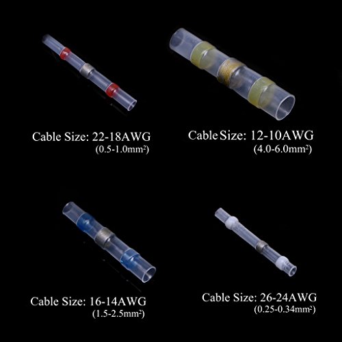 アイテムがセットの75個バットワイヤ圧着コネクタ端子は、銅、PVC製のブリキ、機能dual-walledデザインの中にポリオレフィンチューブの外側とホットメルトで内側]を選択します。これらにより、目視検査、腐食しないよう、provid防水加工になっています。最良の結果を溶かすヒートガンを使用はんだ