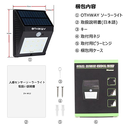 OTHWAY 12 LED センサー ライト ガーデンライト ソーラー 人感 防犯 自動点灯 日本語取説付き (1個)