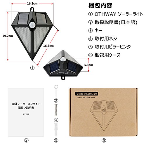 OTHWAY 人感 センサー ライト 6 LED ソーラーライト 屋外 防犯 自動点灯 三角型 日本語取説付き(1個)