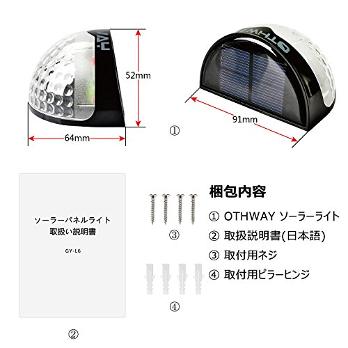 OTHWAY 6 LED ガーデンライト 屋外 ソーラー 充電 光キレイ 半球形 日本語取説付き 二個同梱 (黒)