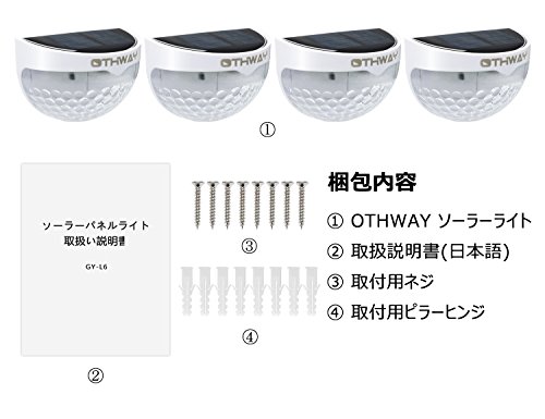 OTHWAY 6 LED 充電 ライト ガーデンライト ソーラーライト 屋外 スポットライト 日本語取説付き 四個同梱 (白)