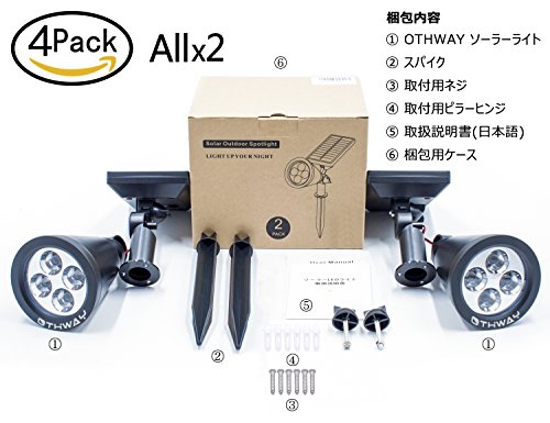 OTHWAY ガーデンライト LED ソーラー ライト スポットライト 屋外 アウトドア 防水 省エネ 工事不要 日本語取説付き (4個)