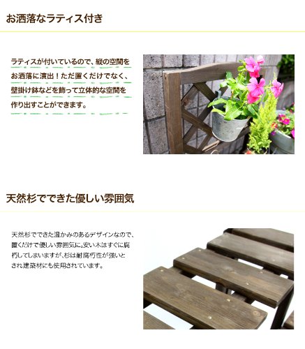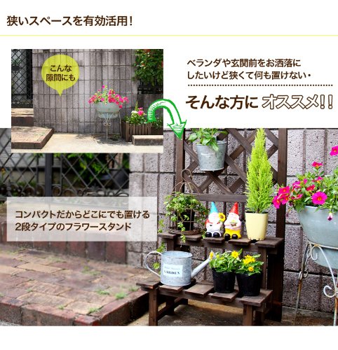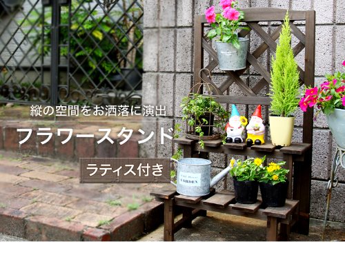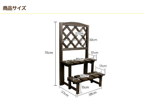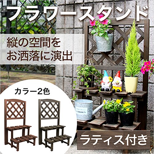 ガーデニングラック 2段 ラティス付 【ダークブラウン】 ガーデニングスタンド フラワースタンド フラワーラック