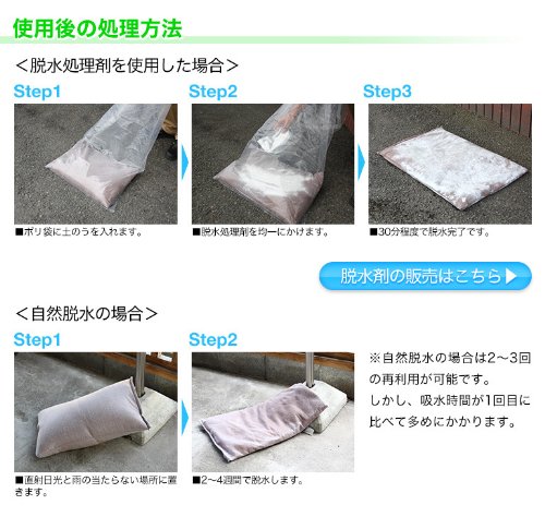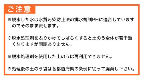 ※脱水処理剤を振り掛けて暫くすると土のう全体が若干熱くなりますが問題ありません。