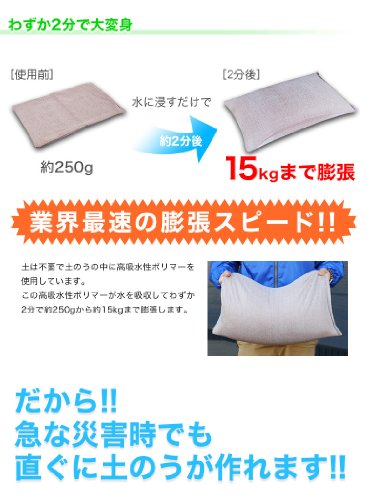・土が不要!水に浸けるだけでわずか2分で膨らむ土嚢 (土のう)です。