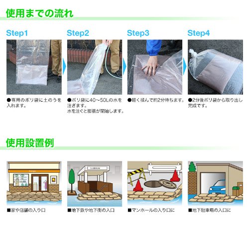 ・洪水時の簡易堤防、地下道・地下街・地下駐車場への流水防止などにお勧めです。