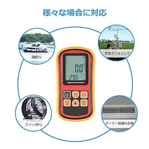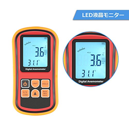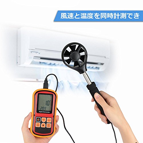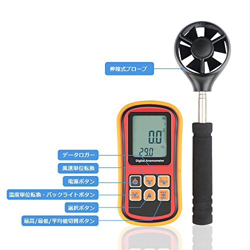 - 風速と温度を同時計測することができるの本格分離型風速計です。最高/最低/平均値/リアルタイム風速表示可能、データロガー機能も付きます。