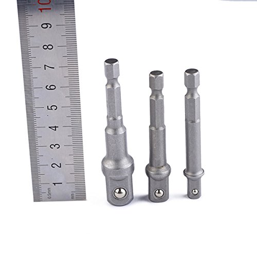 OUNONA 3Pcsソケットアダプターセット1/4"3/8" 1/2"正方形インパクトソケット延長コネクターパワードリルビットアダプター(ロング)