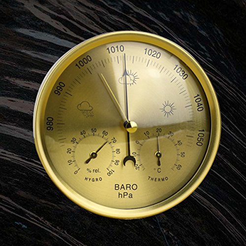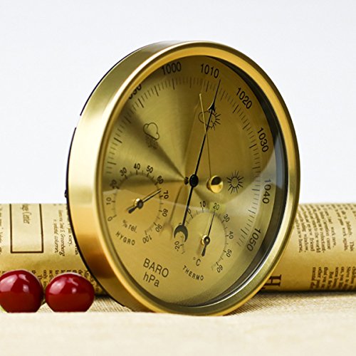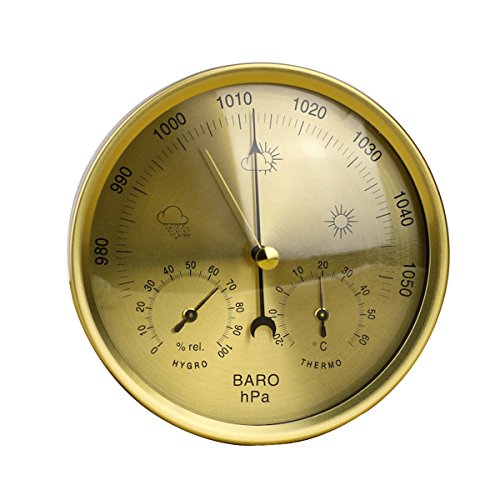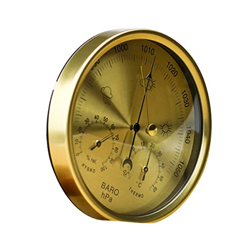 OUNONA 地学・気象 アネロイド式 気圧計 温度湿度計 精密 ステンレス 掛け アナログ 天気予報 警報 屋内・屋外用 (黄色)