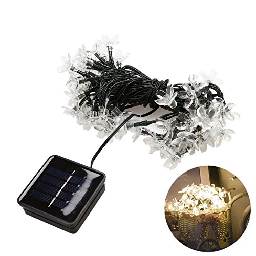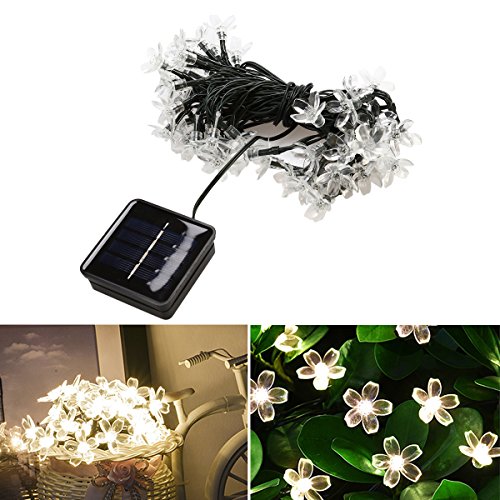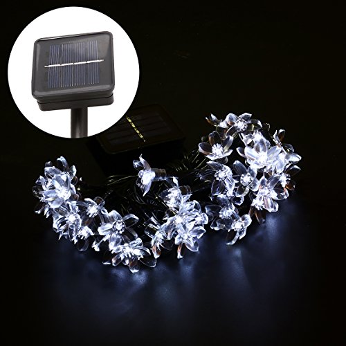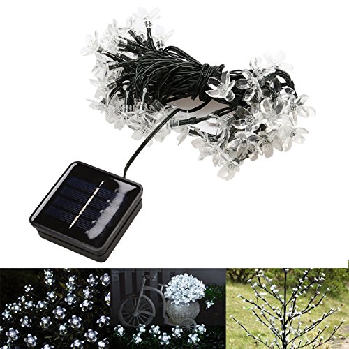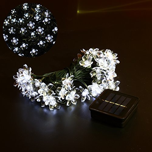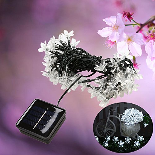 1 *サクラソーラーストリングライト50 LEDチェリーフラワー屋外パティオガーデンウェディングパーティーデコレーション(純白の光)のためのソーラーパワードライト