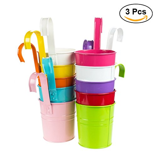 3 * Metall Eimer Blumentöpfe Hängen Haken Pflanzer Pot Balkon Garten Pflanze Blumenhalter (gemischte Farbe)