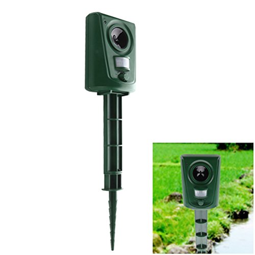 OUNONA 超音波アニマルリペラー太陽光発電耐候性害虫リペラー、猫忌避剤、犬忌避剤、鹿忌避剤、マウス忌避剤、鳥の忌避剤、運動活性化PIRセンサー(緑色)