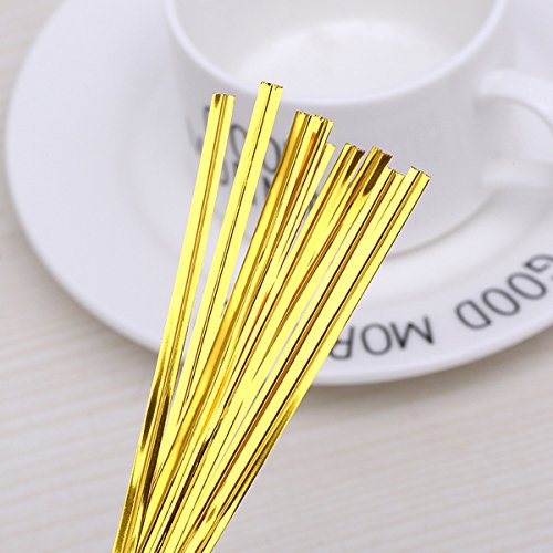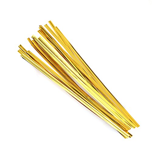 OUNONA ツイストネクタイ バッグツイストタイ 鉄コア 10センチメートル/袋(ゴールデン)