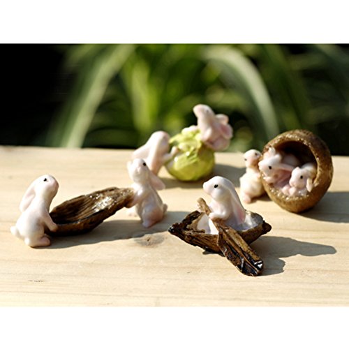 妖精の庭がここにあります!アイテムは、葉の船の形をした庭の装飾のウサギです。現実的な小さなウサギの雨は樹脂製の手で作られています。あなたの庭に毒性を加えるための素晴らしいアクセサリーです。彼らはプランター、妖精の庭の設定、盆栽やテラリウムで自宅にいる。家庭、庭園またはテラリウムに最適な思いやりのある贈り物。屋内外での使用に最適です。