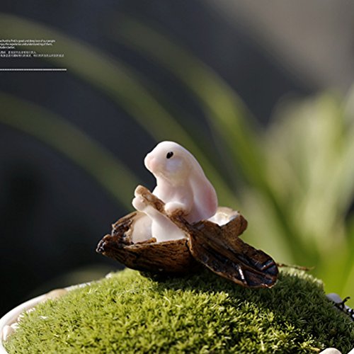 OUNONA マイクロガーデンの風景ミニ樹脂ウサギミニチュアハウス妖精の庭の装飾植物ポット盆栽クラフト装飾(ウサギのボート)