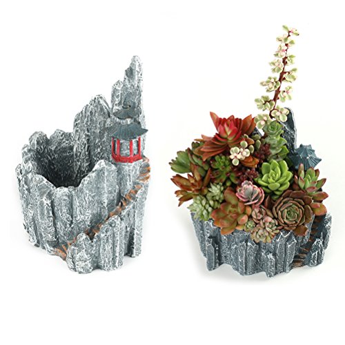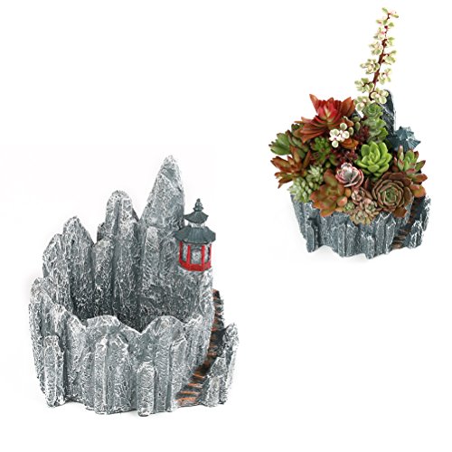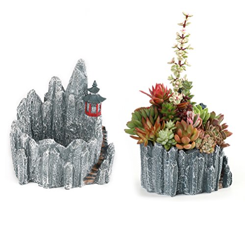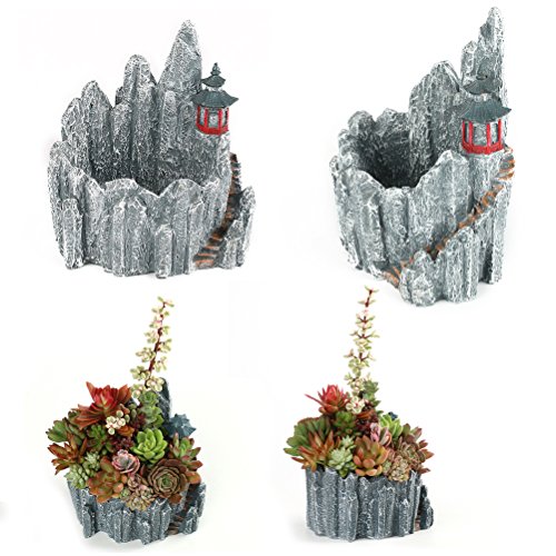 この植物ポットであなたの家とオフィスを飾る!このポットは、耐久性のある使用のために破られない特徴を有する樹脂で作られている。それは、装飾のための小さな寺院で創造的なミニ山の崖の形に設計され、ポットの大容量のコンテナは、同時に異なる植物を育てることができます。小さな花や多肉植物に適しており、オフィスデスク、本棚、ダイニングテーブル、バルコニー、庭に置くことができます。ガーデニングを愛する友人に理想的なギフトアイデア。