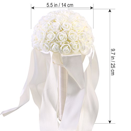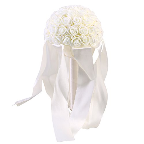OUNONA ウェディングブーケ 花嫁ブーケ フラワー 造花 パール付き(オフホワイト)