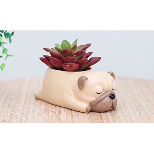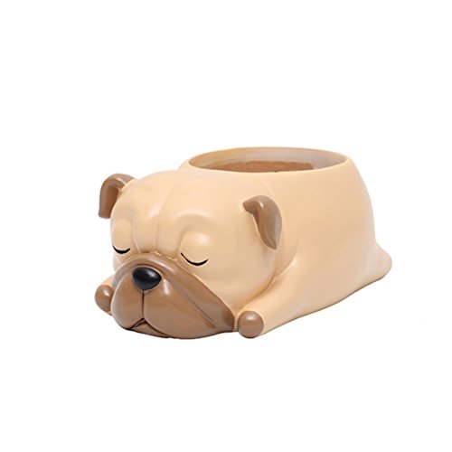 OUNONA 鉢 ミニ 多肉 サボテン 観葉植物 プランター 置物 植物ポット 植木鉢 かわいい動物デザイン 犬 樹脂 プレゼント ホームオフィスデコレーション 室内インテリア 撮影道具(パグ)