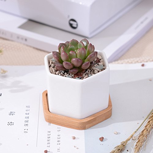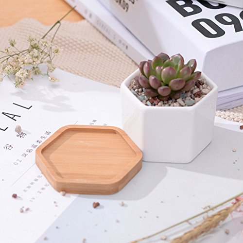 このアイテムは、滑らかな仕上げの高品質のセラミックで作られた六角形の鉢と竹のトレイの3つのセットが含まれています。小さなサイズで設計されており、多肉植物、サボテンおよび他の盆栽に優れています。シンプルで寛大なデザインは、どんな場所でも素敵な装飾になっています。素敵な植物を展示し、楽しい環境を作り上げるのに最適です。