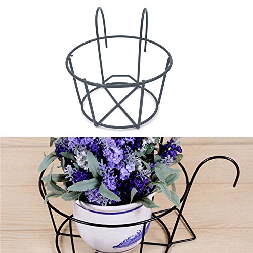 OUNONA ハンギングポット 植物ポットホルダー メタル フラワーポットホルダー 取り外し可能フック ガーデンホームオーナメント アイロンハンガーラック サイズM(ブラック)