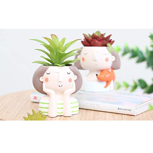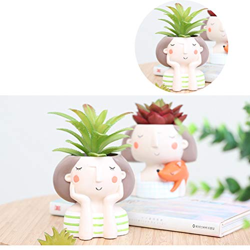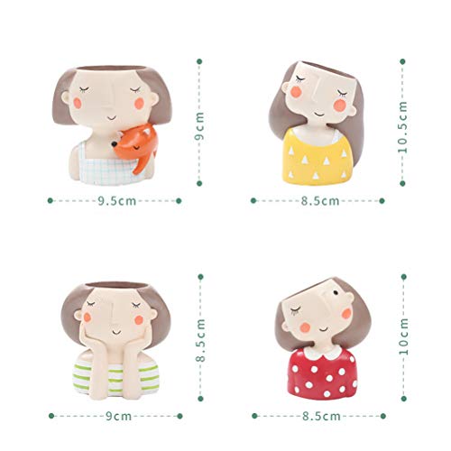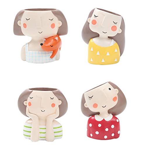 OUNONA 植物ポット 多肉植物ポット 樹脂ポット ミニ 可愛い女の子 デスクプランター 鉢植え ホーム オフィスの装飾 4ピースセット