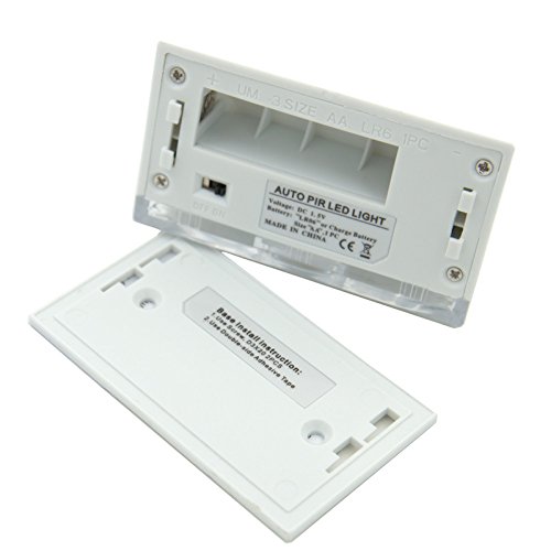 ご注意:電池を入れて、両面テープで貼り付けるだけ! ・裏側のカバーをスライドさせて単3電池1本を入れて下さい(※電池は付属しておりません) ・カバーをあけると、センサーON/OFFスイッチがあります! ・あとはお好みの場所に貼り付けて設置完了!