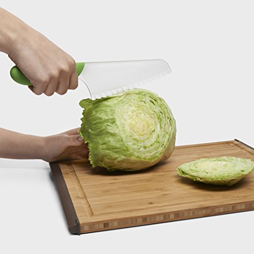 Package Quantity:1 ?|? Size:Set of 1 The OXO Good Grips Lettuce Knife has a serrated edge for easily cutting through all types of greens, from leafy romaine to crisp iceberg. The clear plastic blade will prevent lettuce from bruising or browning. Also ideal for cutting desserts like cakes and bars, this Knife is safe for nonstick bakeware and perfect for getting brownies out of the pan. The soft, comfortable handle is nonslip, even when wet. Dishwasher safe. BPA Free.