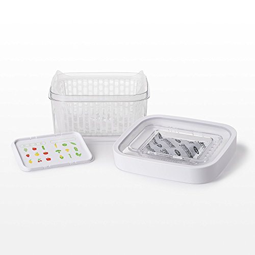 - The elevated basket lifts produce up and away from the container walls to promote airflow and help prevent rotting. It can also be removed and used as a colander.