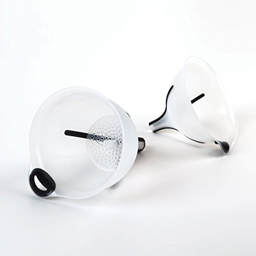 - Includes: 4-oz funnel, 16-oz funnel and strainer